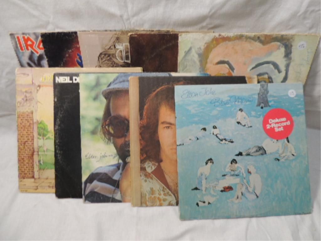LOT 10 VINTAGE VINYL RECORDS. IRON MAIDEN, JOURNEY, DOORS, BEATLES, BOB DYLAN, ELTON JOHN, NEIL DIAMOND,