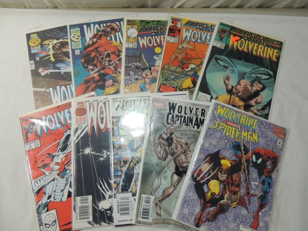 ASSORTED WOLVERINE COMICS. WOLVERINE VERSUS SPIDERMAN AND MORE. AS SHOWN SEE PHOTO FOR MORE DETIALS.