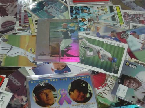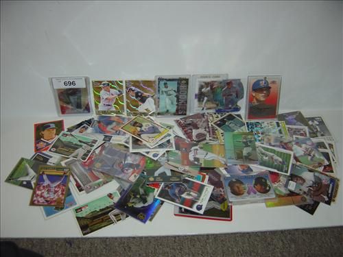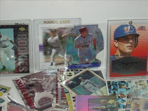 LOT OF 100+ BASEBALL CARDS INCLUDING CARDS LIKE: SKYBOX #99 HENRY RODRIRUEZ, UPPER DECK #122 ROY OSWALT, FLEER FOCUS MICHAEL BARRETT AUTOGRAPH CARD, UPPER DECK COLLECTORS CHOICE #55 JACKIE ROBINSON, TOPPS GOLD LABEL #54 JOHN OLERUD, TOPPS #520 GARY CARTER, AND MANY MORE. AS SHOWN. VIEW PICTURE FOR DETAIL.