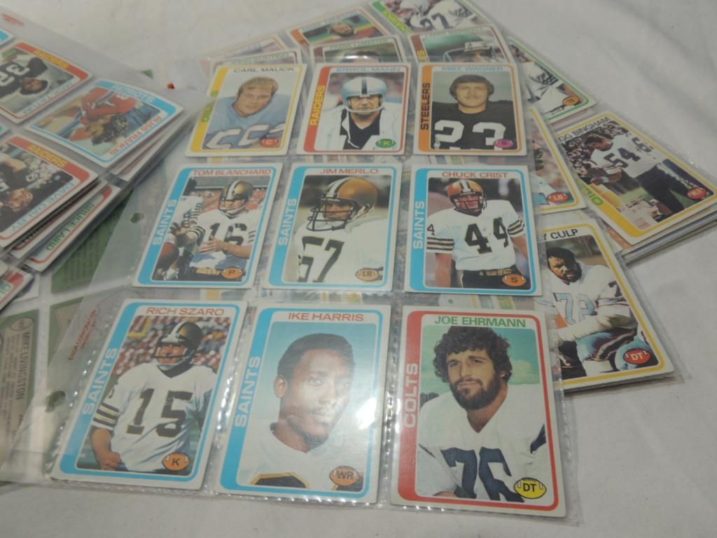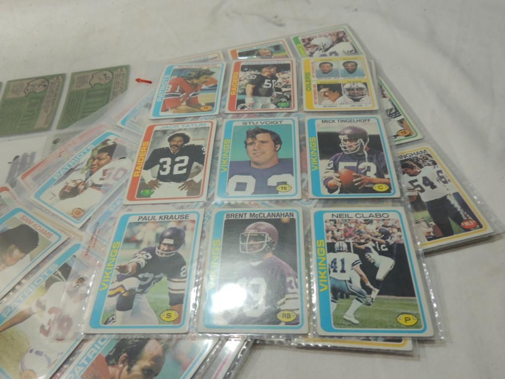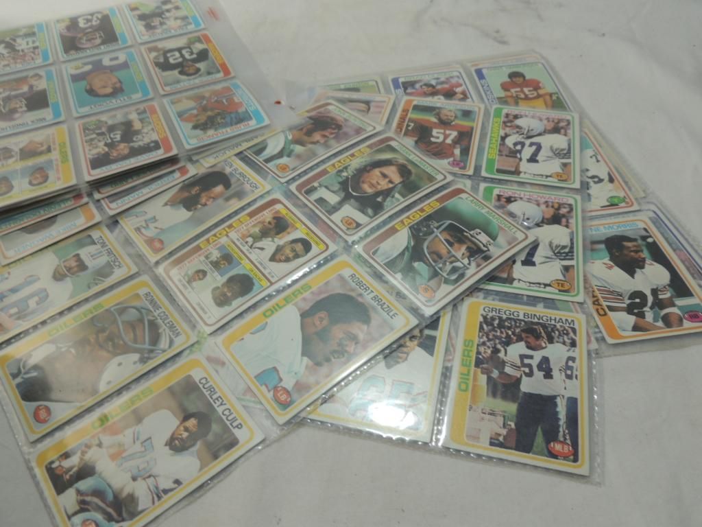 ASSORTED FOOTBALL PLAYER CARDS. MIXED MAKERS. GOOD CONDITION BINDER SHEETS TRADING CARDS. VINTAGE CARDS AS SHOWN SEE PHOTO FOR MORE DETAILS.