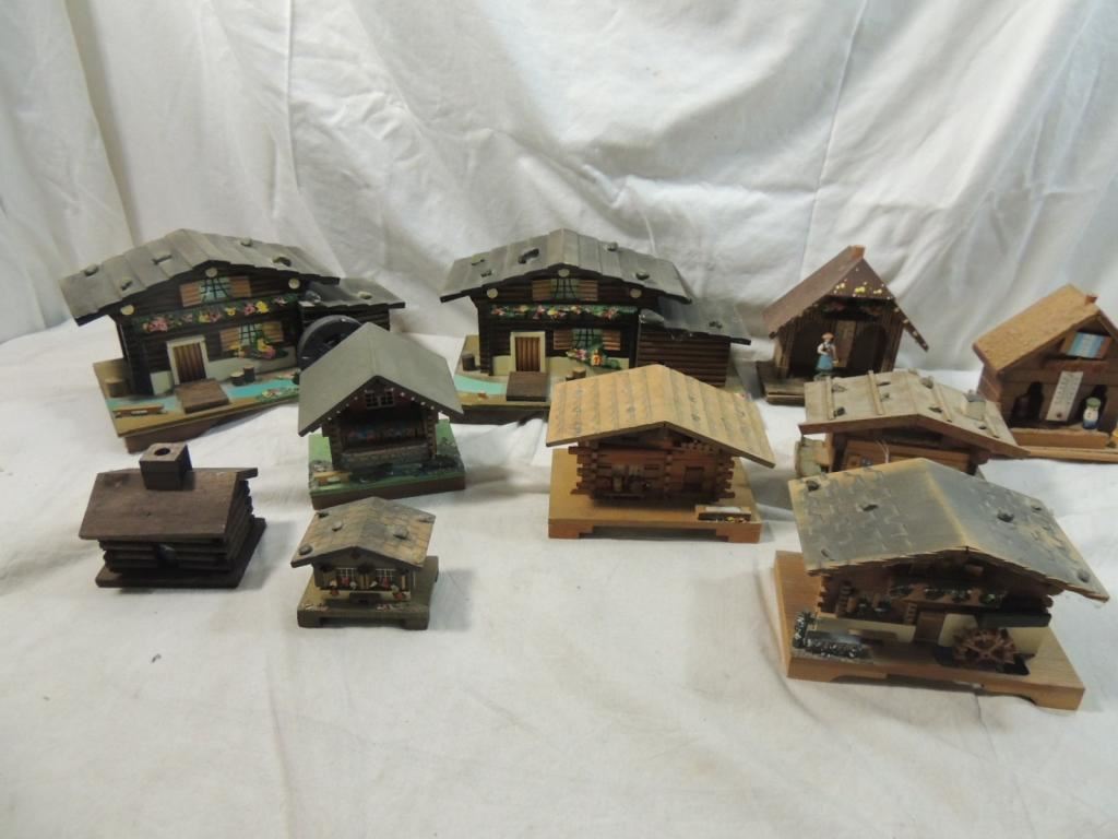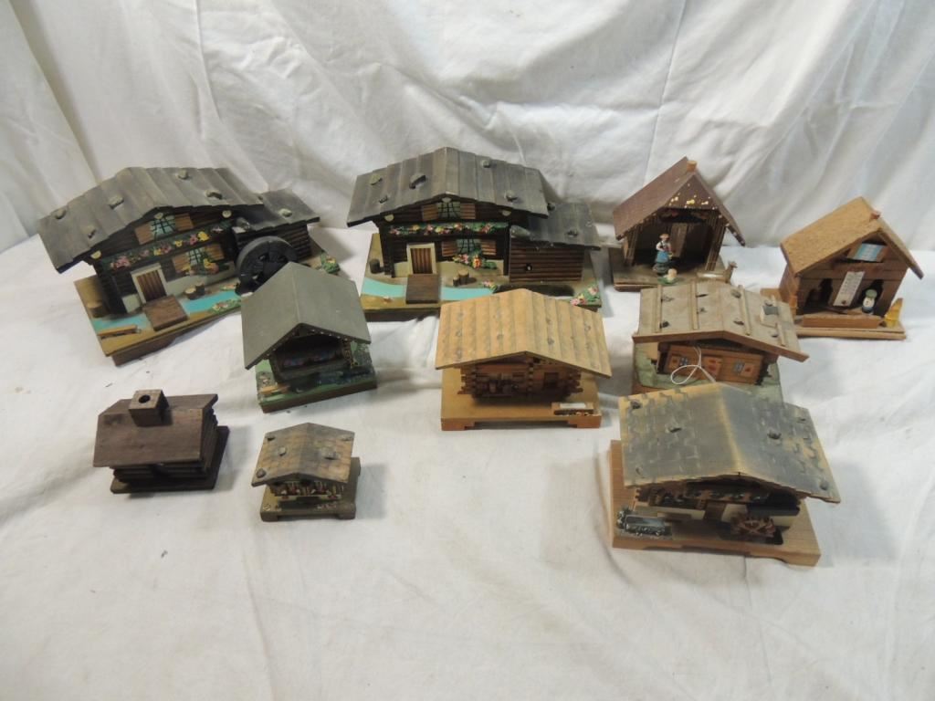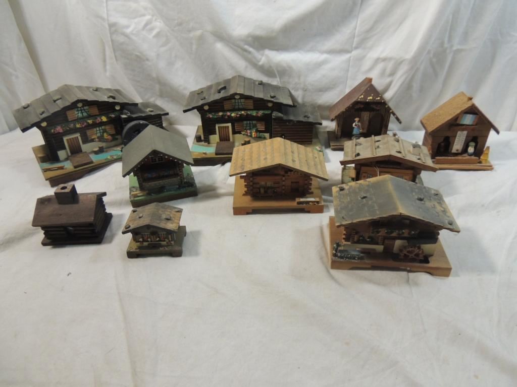 COTTAGE GERMAN HOUSES, THERMOMETER, COLLECTIBLE, WOODEN, ASSORTED, BOXES, AS SHOWN SEE PHOTO FOR MORE DETAILS