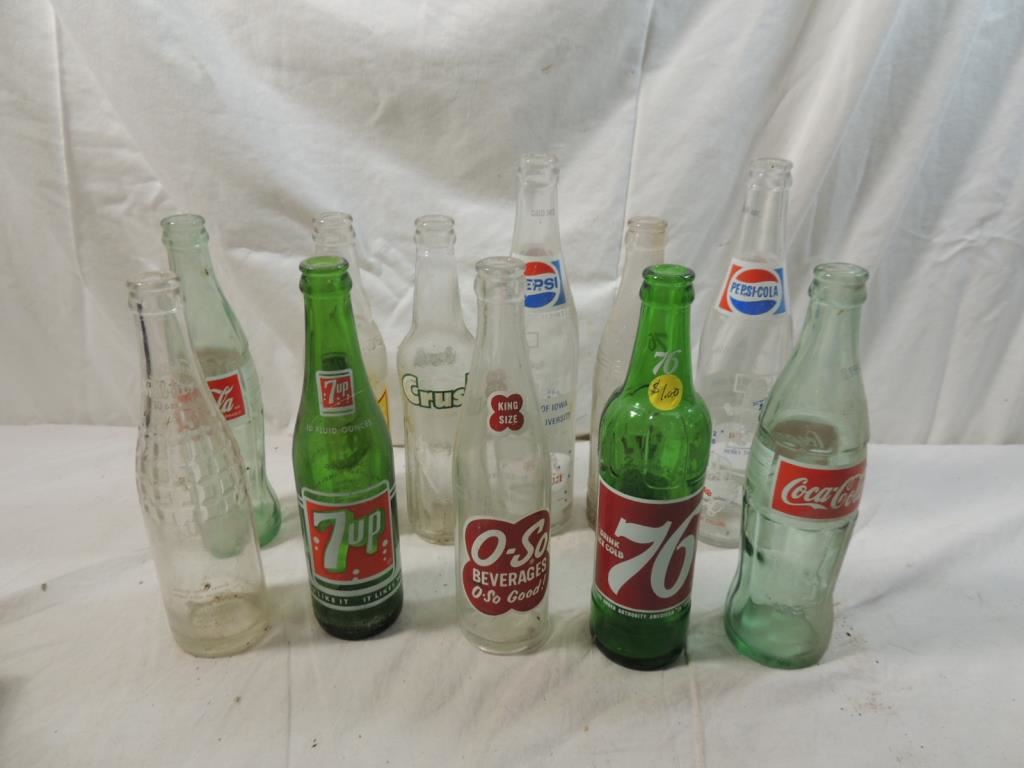 DADS ROOTBEER, PEPSI, COCA COLA, 7UP, CRUSH, SODA BOTTLES VINTAGE COLLECTORS BOTTLES, VINTAGE BOOTLES, GLASS BOTTLES, CRAFT BOTTLES, GOOD CONTITION, COLLECTIBLE, COLLECTORS, AS SHOWN SEE PHOTO FOR MORE DETAILS.