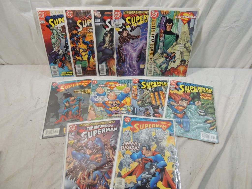 DC COMICS SUPERMAN COMICS, SUPER HERO COMICS, VINTAGE COMICS, COLLECTIBLE COMICS, PROTECTIVE PLASTIC & CARDBOARD, GOOD CONDITION COMICS, COLLECTORS COMICS, AS SHOWN SEE PHOTO FOR MORE DETAILS