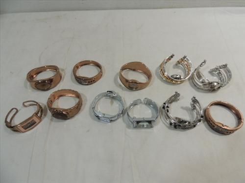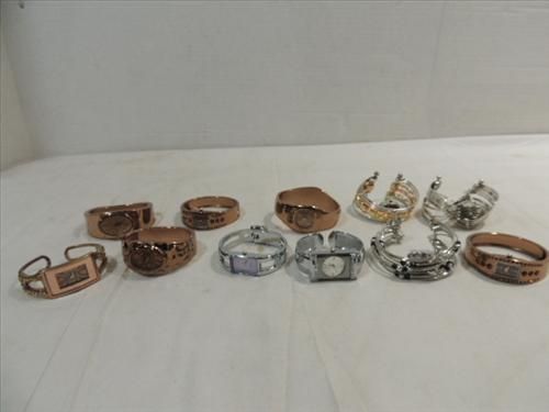 LOT 11 LADYS QUARTZ WRIST WATCHES: CLAMP BAND STYLE. WANJUE, WD. AS SHOWN. VIEW PICTURE FOR DETAIL.