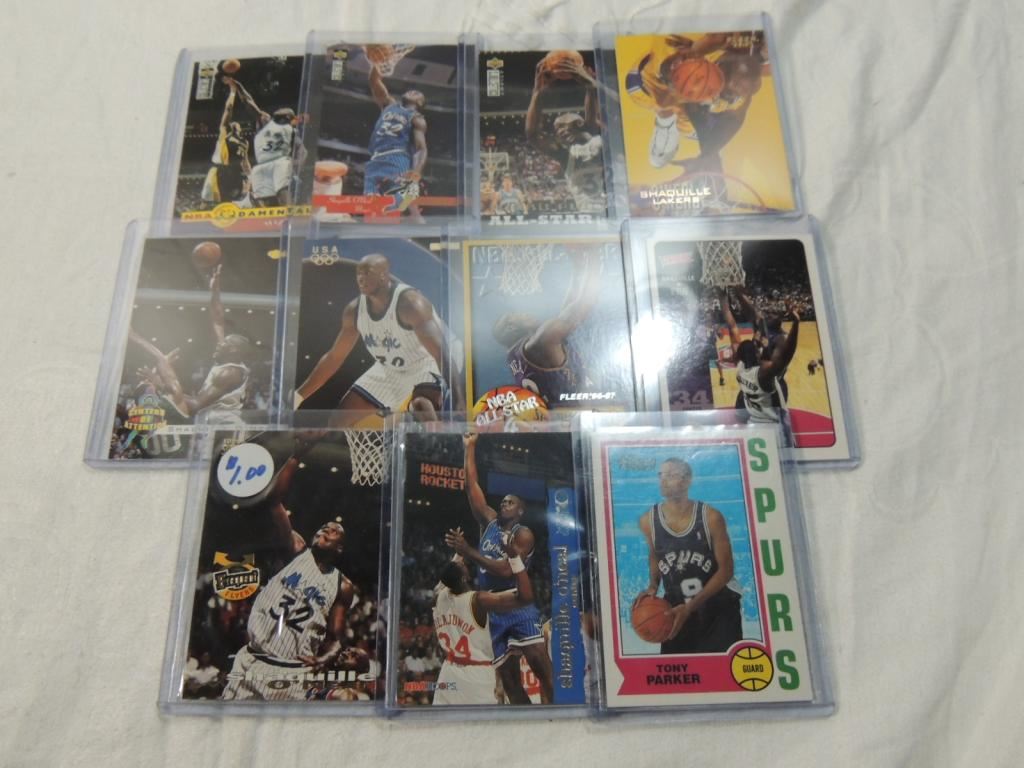 TONY PARKER, SHAQUILLE ONEAL, BASKETBALL PLAYER CARDS. TRADING CARDS. COLLECTIBLE. BASKETBALL MEMORABILIA. GOOD CONDITION AS SHOWN. SEE PHOTO FOR MORE DETAILS.