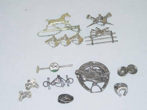 LOT 11 PCS. OF HORSE RELATED JEWELRY INCLUDING LG. HORSESHOE PIN W/ 2 HORSEHEADS, (4) BEAUCRAFT STERLING HORSE PINS;