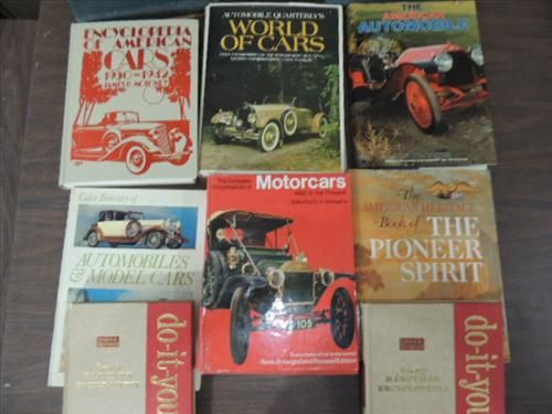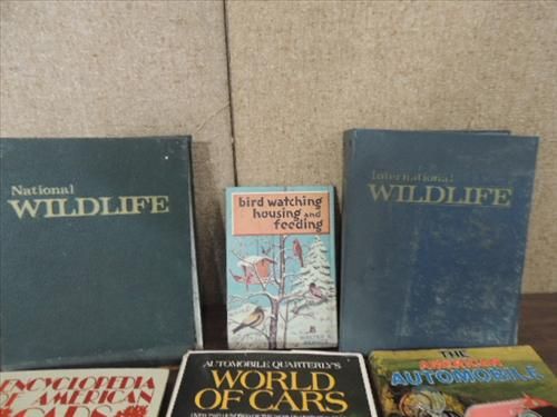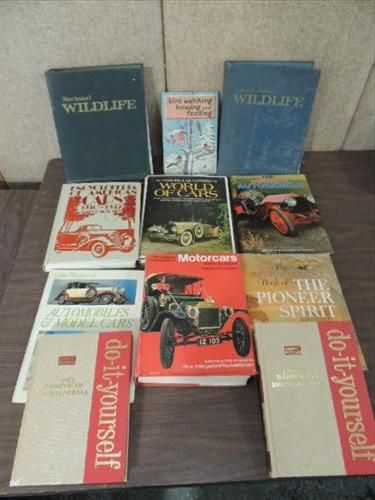 LOT 11 (7) PICTORIAL REFERENCE BOOKS HISTORY OF CAR, (2) WILDLIFE MAGAZINE BINDERS AND 2 DO-IT-YOURSELF BOOKS. AS SHOWN. VIEW PICTURE FOR DETAIL.