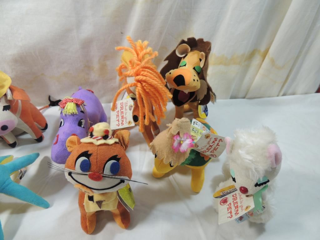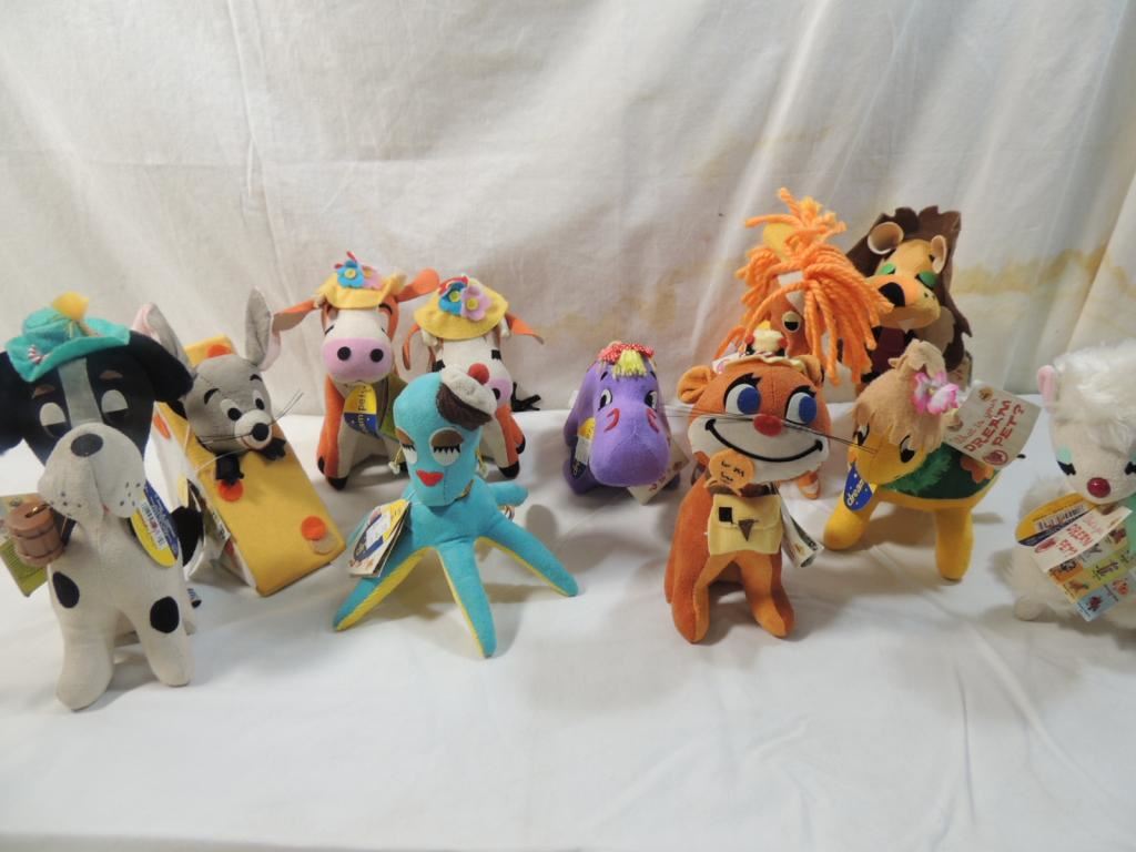 LUCY LAMB, HENRIEN HIPPO, MINI OCTOPUS, ROQUEFORT, HONOLULU HARRY, BERNARD, CLARABELLE, LUDICROUS LION, HORSE BEAUTIFUL, FISH N CHIPS RARE & VINTAGE R. DAKIN COMPANY DREAM PETS STUFFED ANIMAL TOY STILL HAS THE TAG ATTACHED. VINTAGE & NEWER GREAT CONDITION, HIGHLY COLLECTIBLE, SUPER COLORFUL AND DETAILED THESE R. DAKIN "DREAM PETS" ARE CUTE AND CLEVER. SHOWING AN AMAZING LEVEL OF CRAFTSMANSHIP AND USE OF A VARIETY OF MATERIALS THESE TOYS WERE A FAVORITE IN THE 1960s VELVET AND FELT WITH OTHER EMBELLISHMENTS IN GREAT CONDITION. AS SHOWN SEE PHOTO FOR MORE DETAILS.