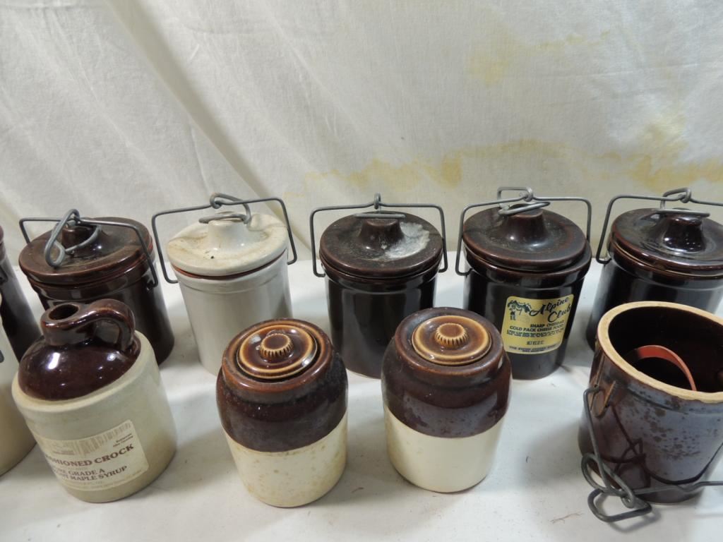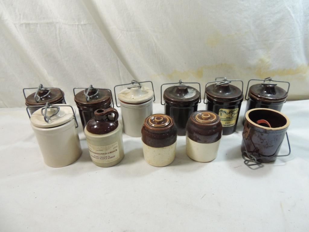 STONEWARE CANNING JARS JUGS LIDDED CANNING JARS VINTAGE AS SHOWN SEE PHOTO FOR MORE DETAILS