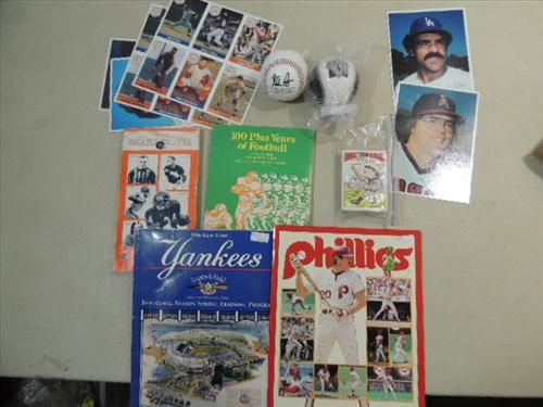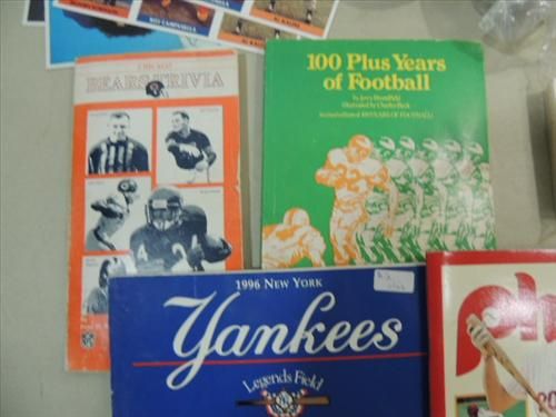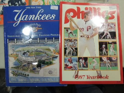 LOT 11 VARIOUS SPORTS COLLECTIBLES: 1980 FAMOUS FACTS CARDS, 1987 PHILLIES YEAR BOOK, 1996 YANKEE YEARBOOK AND MORE. AS SHOWN. VIEW PICTURE FOR DETAIL.