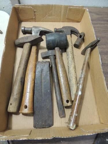 LOT 11 VINTAGE TOOLS: 9 VARIOUS STYLED HAMMERS,