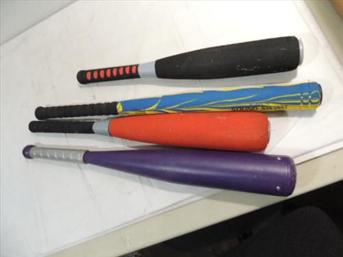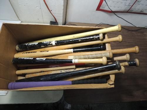 LOT 11 WOODEN BASEBALL BATS: SIZE 25 TO 30, 4 NERF BATS. AS SHOWN. VIEW PICTURE FOR DETAIL.