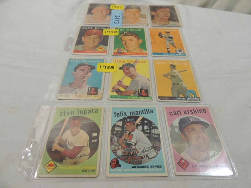 STAN LOPATA, FELIX MANTILLA, CARL ERSKINE , MIKE FORNIELES, DICK GERNERT, MILT BOLLING, SOLLY HEMUS, JOE ADCOCK, MARV THRONEBERRY BASEBALL PLAYER CARDS. TRADING CARDS. COLLECTIBLE. BASEBALL MEMORABILIA. VINTAGE TRADING CARDS, VINTAGE BASEBALL CARDS,  GOOD CONDITION AS SHOWN. SEE PHOTO FOR MORE DETAILS.