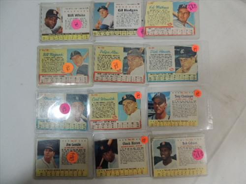 LOT 12 1961 TO 63 POST CEREAL BASEBALL PLAYER CARDS. GIL HODGES, ED MATHEWS, FELIPE ALOU, BOB GIBSON. AS SHOWN. VIEW PICTURE FOR DETAIL.