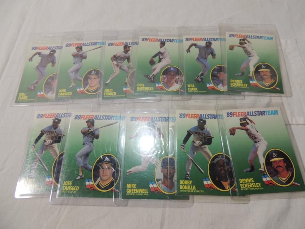 1989 FLEER ALLSTAR TEAM BASEBALL PLAYER CARDS IN SLEEVES, AND 1975 TOPPS BASEBALL PLAYER CARDS. AS SHOWN. SEE PHOTO FOR MORE DETAILS.