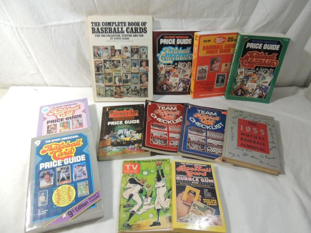 BASEBALL CARD PRICE GUIDE #9, BUBBLE GUM BOOK, TV GUIDE, THE 1955 MUTUAL BASEBALL ALMANAC, TEAM BASEBALL CARD CHECKLIST #1, #2, BASEBALL CARD PRICE GUIDE #10. BASEBALL MEMORABILIA #1 PRICE GUIDE #2, BASEBALL CARD PRICE GUIDE SPORTS COLLECTORS DIGEST 2ND E