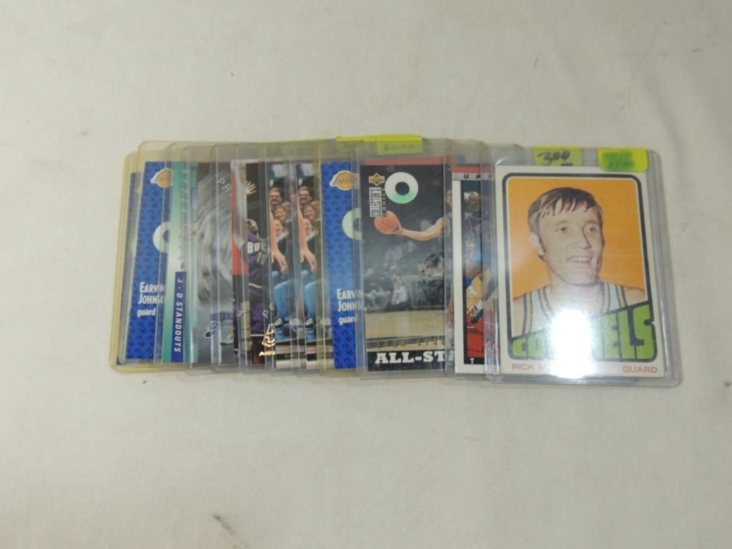 MIXED MAKERS AND MIXED DATES. BASKETBALL PLAYER CARDS. TRADING CARDS. FOOTBALL COLLECTIBLE. SPORTS BASKETBALL MEMORABILIA. AS SHOWN SEE PHOTO FOR MORE DETAILS.