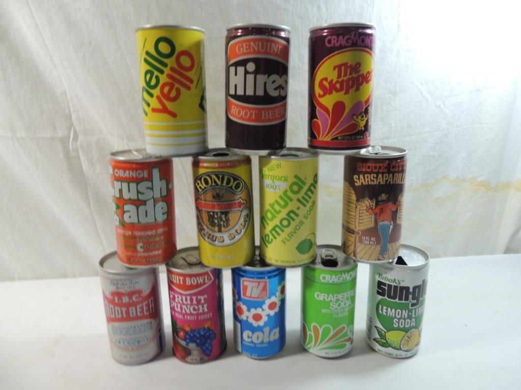 SODA CANS POP CANS COLA CANS VINTAGE COLLECTIBLE. GOOD CONDITION. EMPTY. AS SHOWN SEE PHOTO FOR MORE DETAILS.