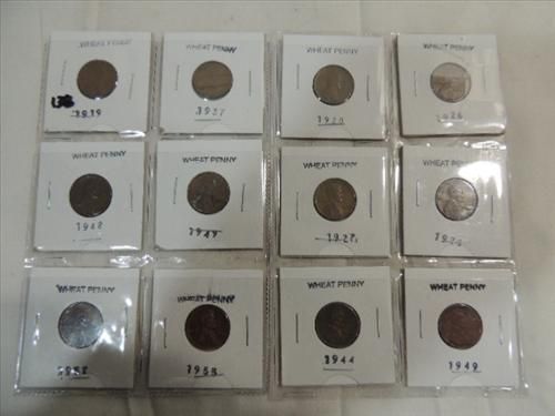 LOT 12 CIRCULATED WHEAT PENNIES: 1919, 20, 26, 27, 28,42, 44, 49 AND MORE. AS SHOWN. VIEW PICTURE FOR DETAIL.
