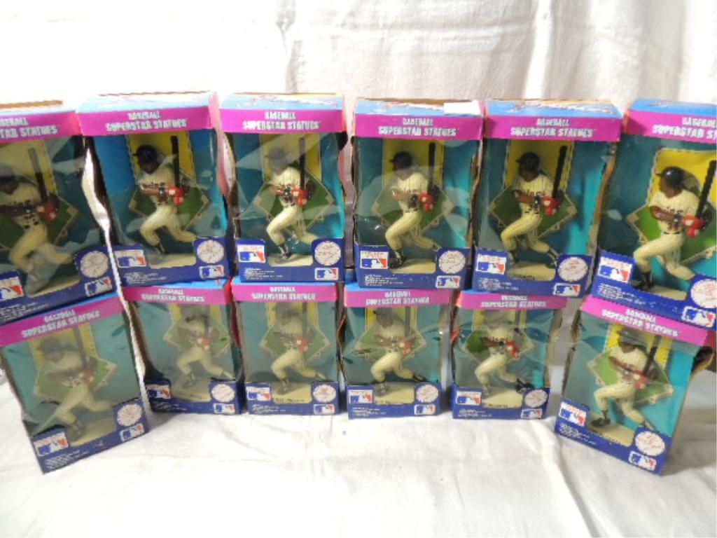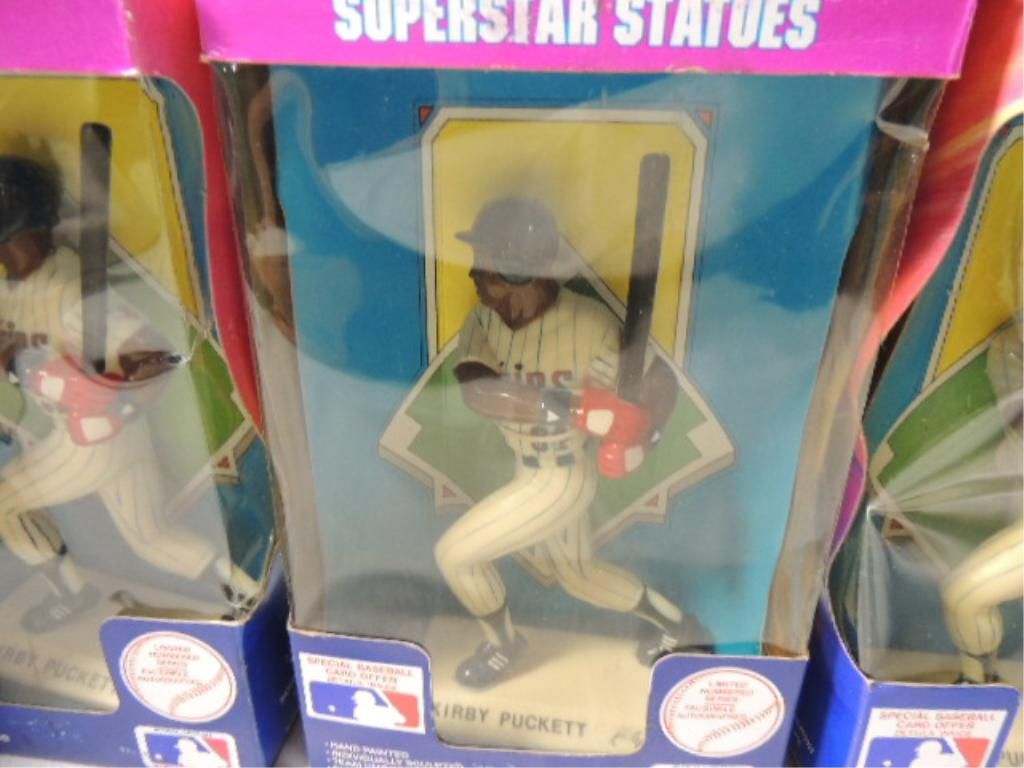 LOT 12 KIRBY PUCKETT BASEBALL PLAYER ACTION FIGURE STATUES. MADE IN THE USA. ROCKFORD, IL. IN BOXES. GREAT FOR BASEBALL THEME PARTY DECOR/ GIFTS. COLLECTIBLES. AS SHOWN. SEE PHOTO FOR MORE DETAILS.