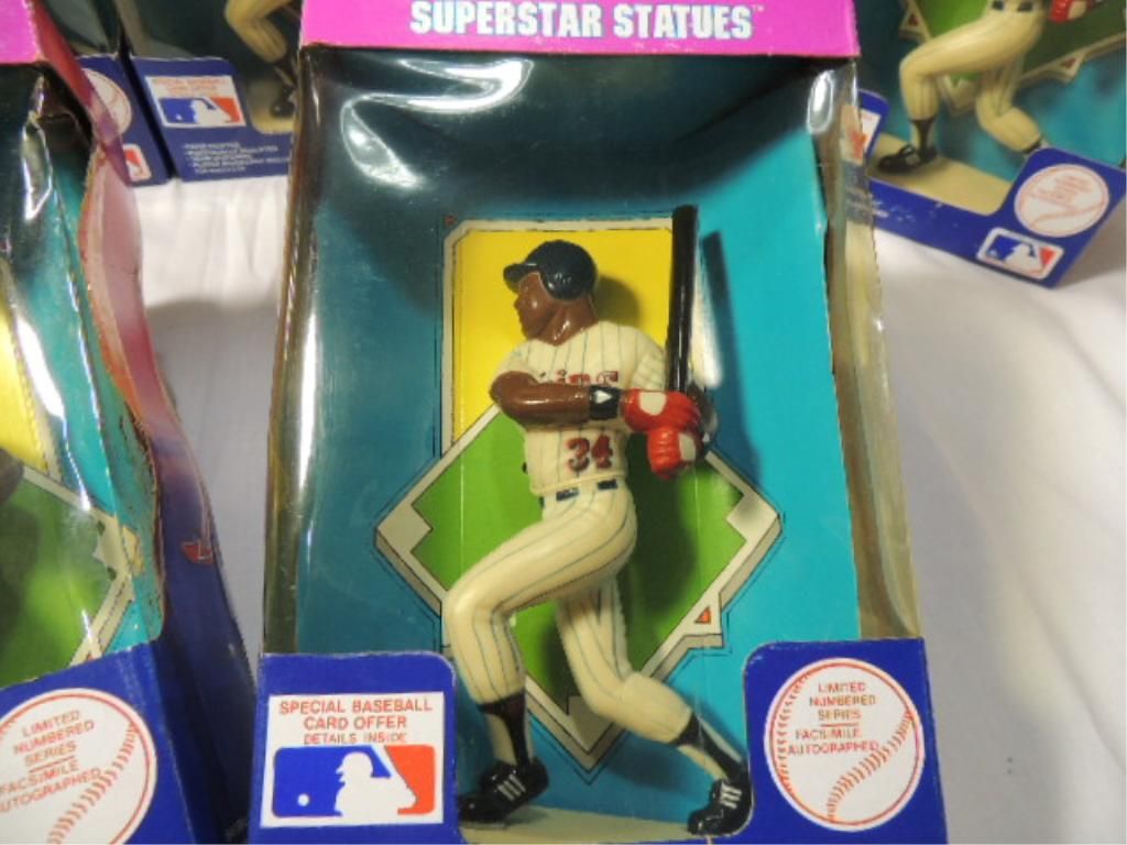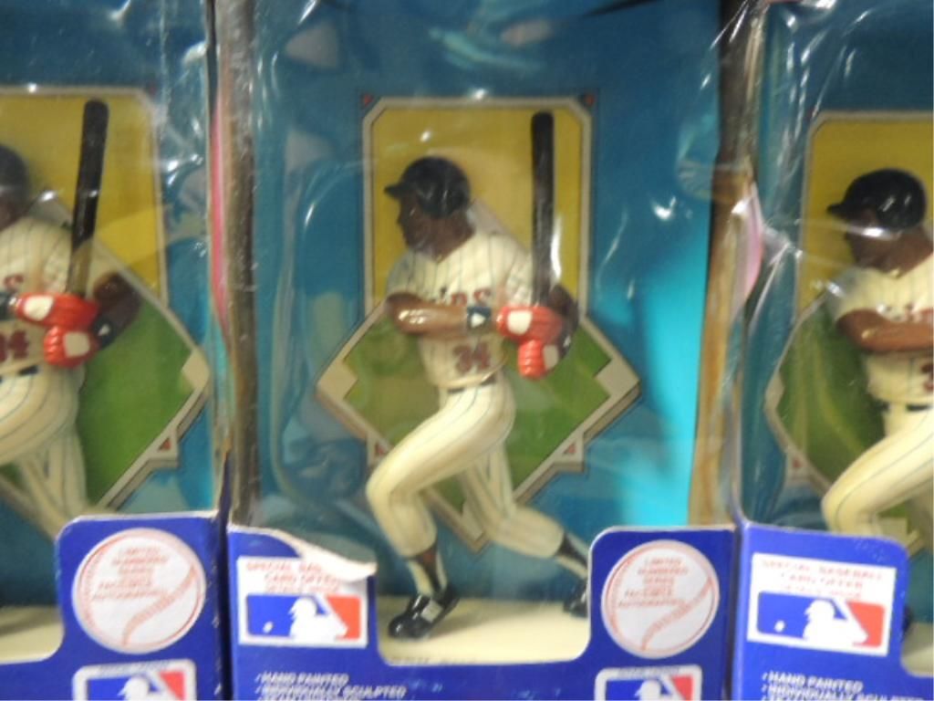 LOT 12 KIRBY PUCKETT BASEBALL PLAYER ACTION FIGURE STATUES. MADE IN THE USA. ROCKFORD, IL. IN BOXES. GREAT FOR BASEBALL THEME PARTY DECOR/ GIFTS. COLLECTIBLES. AS SHOWN. SEE PHOTO FOR MORE DETAILS.