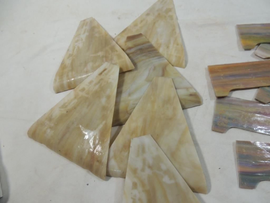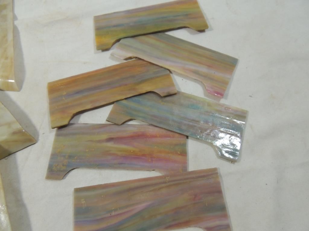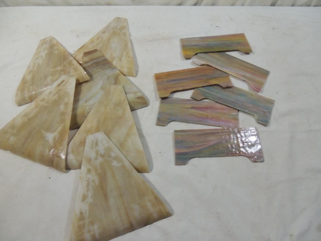 TIFFANY LAMP PIECES, SLAG GLASS PIECES, COLLECTIBLE GLASS PIECES, AS SHOWN SEE PHOTO FOR MORE DETAILS.