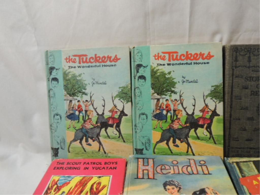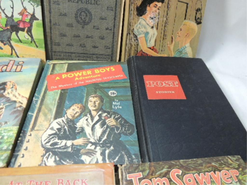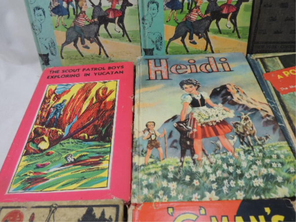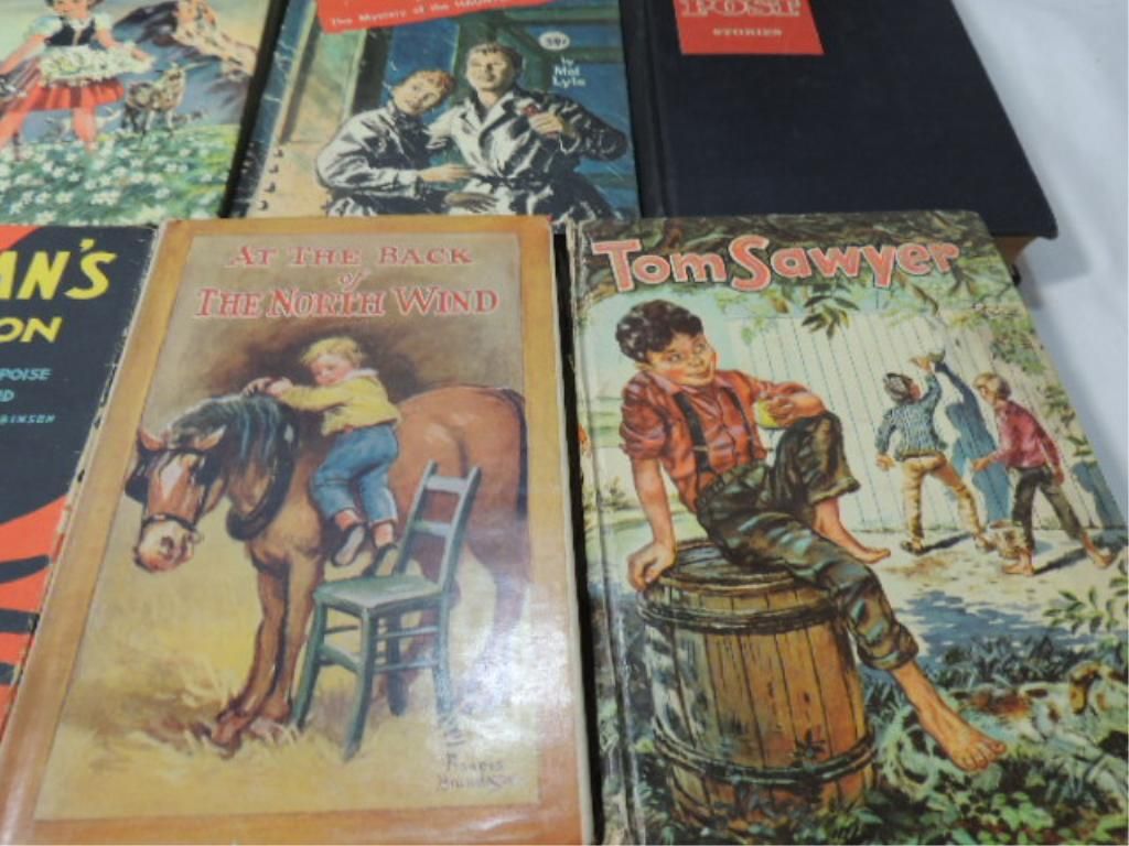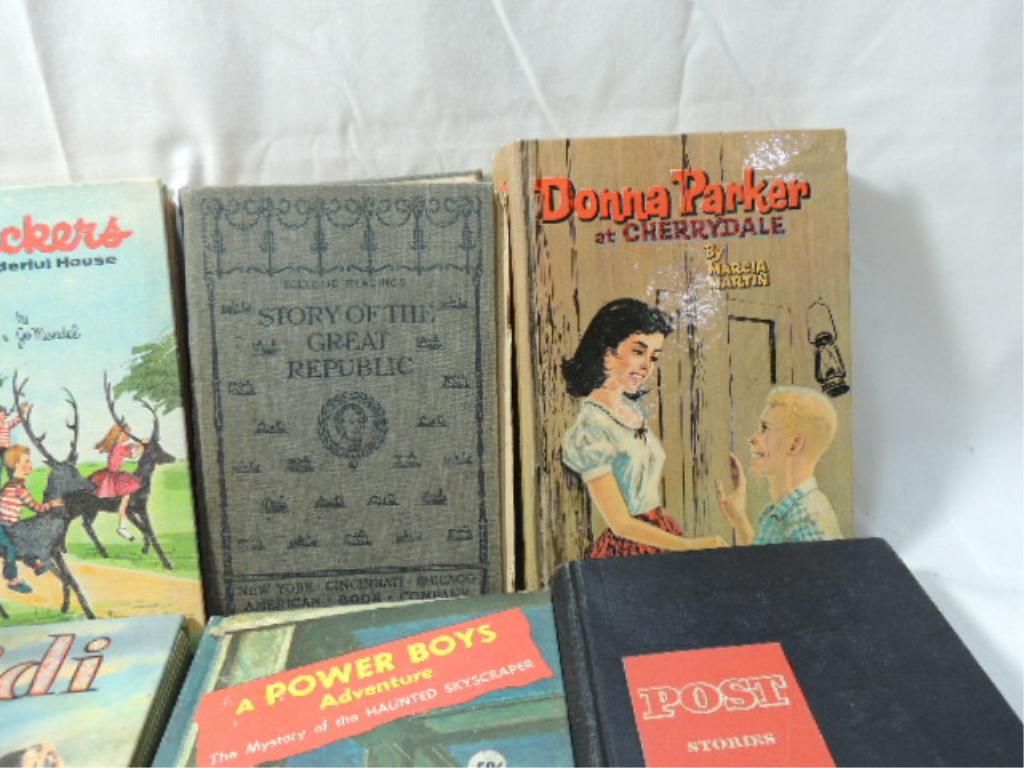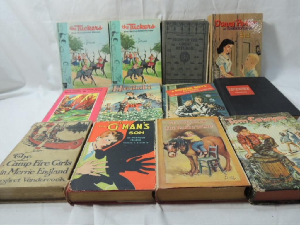 WHITMAN, GOLDSMITH HARDCOVER VINTAGE YOUNG ADULT BOOKS. TOM SAYER, HEIDI, AT THE BACK OF THE NORTH WIND, THE CAMPFIRE GIRLS, POST STORIES, THE MYSTERY OF THE HAUNTED SKYSCRAPER, THE SCOUT PATROL BOYS, DONNA PARKER AT CHERRYDALE, THE TUCKERS, STORY OF THE GREAT REPULBIC. AS SHOWN. SEE PHOTO FOR MORE DETAILS.