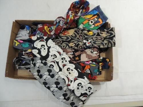 LOT 12 VINTAGE MEN'S TOPICAL TIES: MICKEY MOUSE, GOOFEY, DAFFY DUCK AND BUGS BUNNY. AS SHOWN. VIEW PICTURE FOR DETAIL.