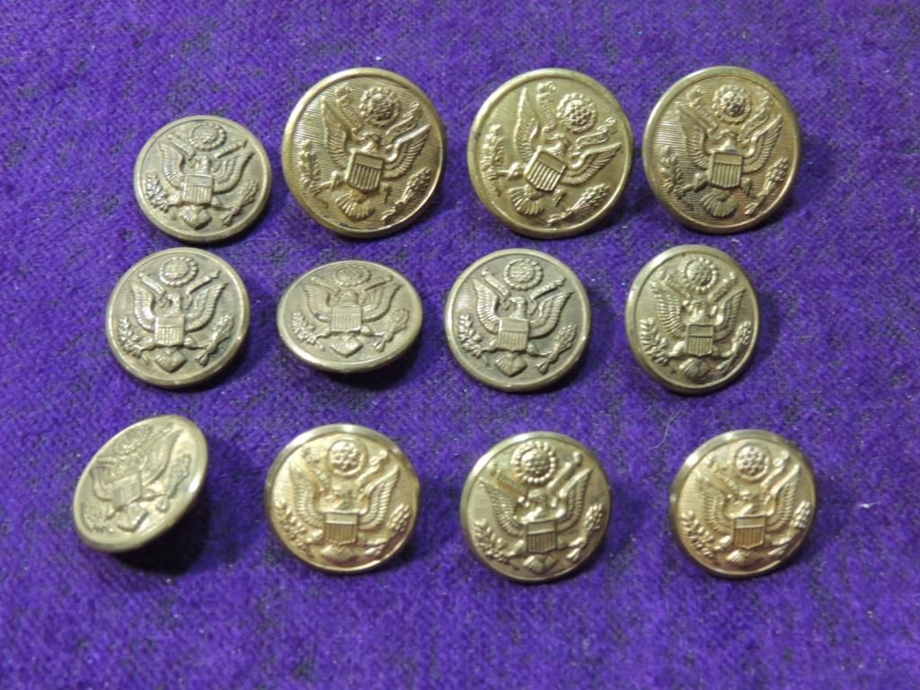 MILITARY BUTTONS VINTAGE MILITARY UNIFORM. ANTIQUE EAGLE USA BRASS. NAVY, ARMY, EAGLE, AIR FORCE WORLD WAR CILVIL WAR. WW2. AS SHOWN. SEE PHOTO FOR MORE DETAILS.