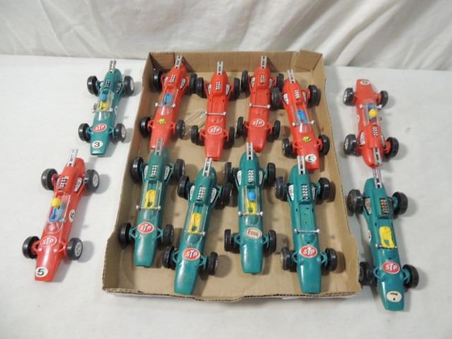 LOT 12 VINTAGE PLASTIC INDY RACE CAR TOYS