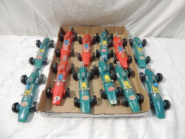 LOT 12 VINTAGE PLASTIC INDY RACE CAR TOYS