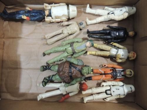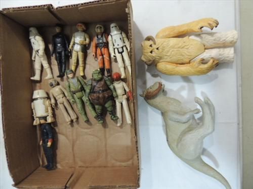 LOT 12 VINTAGE STAR WARS ACTION FIGURES: TON-TON, REBEL ALLIANCE STAR FIGHTERS AND MORE. AS SHOWN. VIEW PICTURE FOR DETAIL.