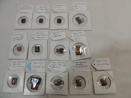 LOT 13 (7) TIGER EYE AGATE, BLACK ONYX, CUT STONES. ASSORTED SIZES. AS SHOWN. VIEW PICTURE FOR DETAIL.