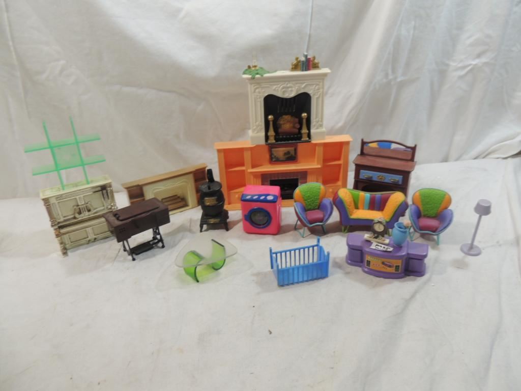 FIREPLACES, ENTERTAINMENT CENTER, CHAIRS, STOVE, DRESSER, COLORFUL, DETAILED MINIATURE RELICA DOLL HOUSE ACCESSORIES, DOLLHOUSE FURNITURE, COLLECTIBLE, DOLL ACCESSORIES, COLLECTORS FURNITURE & ACCESSORIES, GREAT CONDITION, AS SHOWN SEE PHOTO FOR MORE DETAILS.