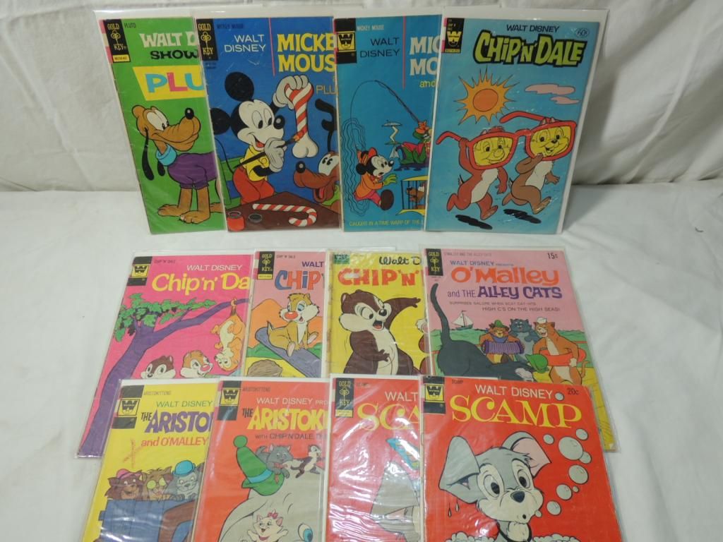 WALT DISNEY ASSORTED COMICS. WALT DISNEY SCAMP, ARISTOKITTENS, OMALLEY AND THE ALLEY CATS, CHIP N DALE, MICKEY MOUSE & PLUTO, MICKEY MOUSE & GOOFY, PLUTO. AS SHOWN. SEE PHOTO FOR MORE DETAILS.
