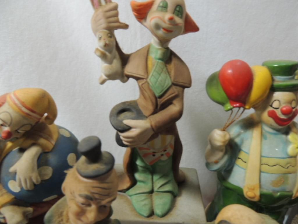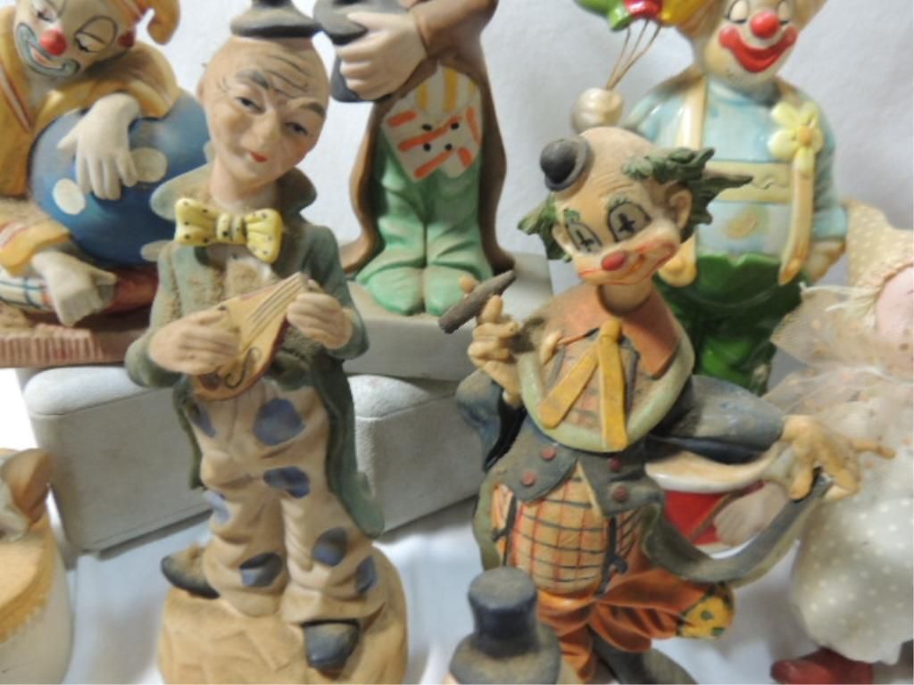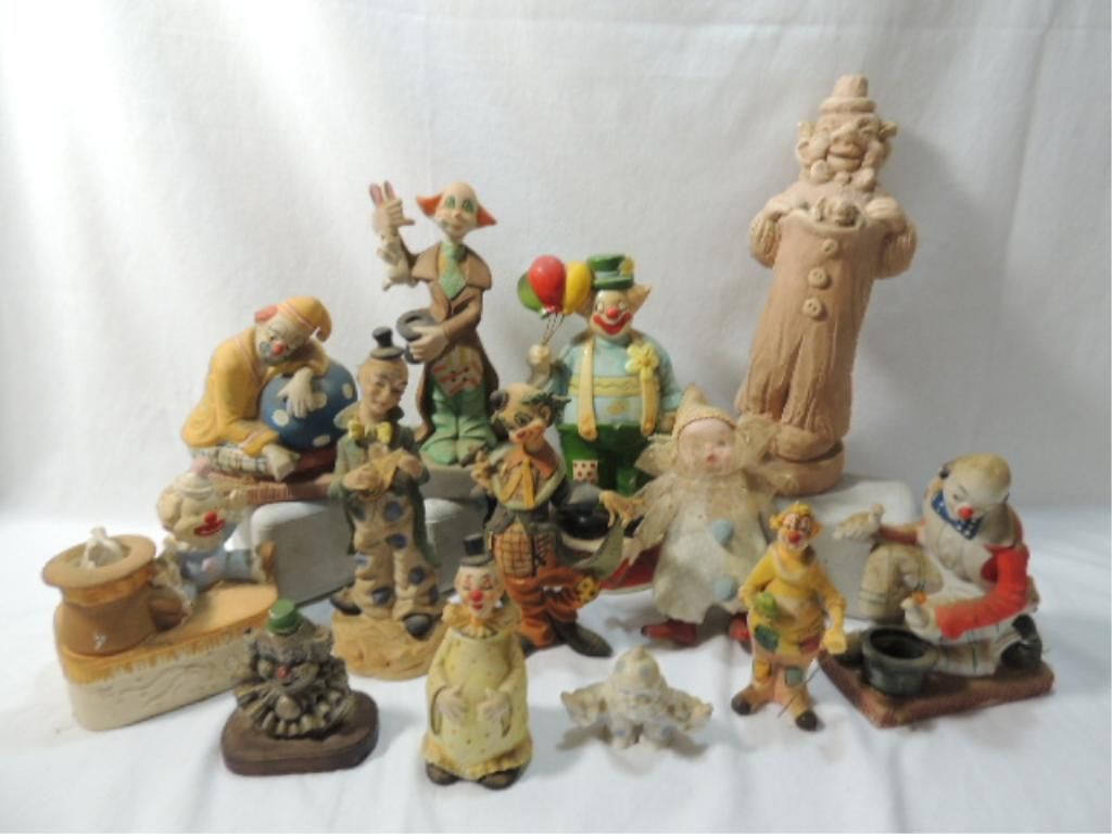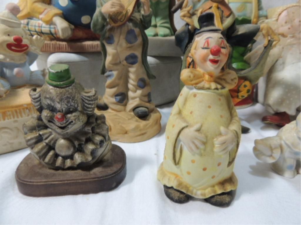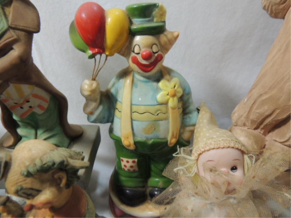 CLOWNS, CLOWNS, CLOWNS... VARIOUS STYLES, SIZES, POSES, MATERIALS. AS SHOWN. SEE PHOTO FOR MORE DETAILS.