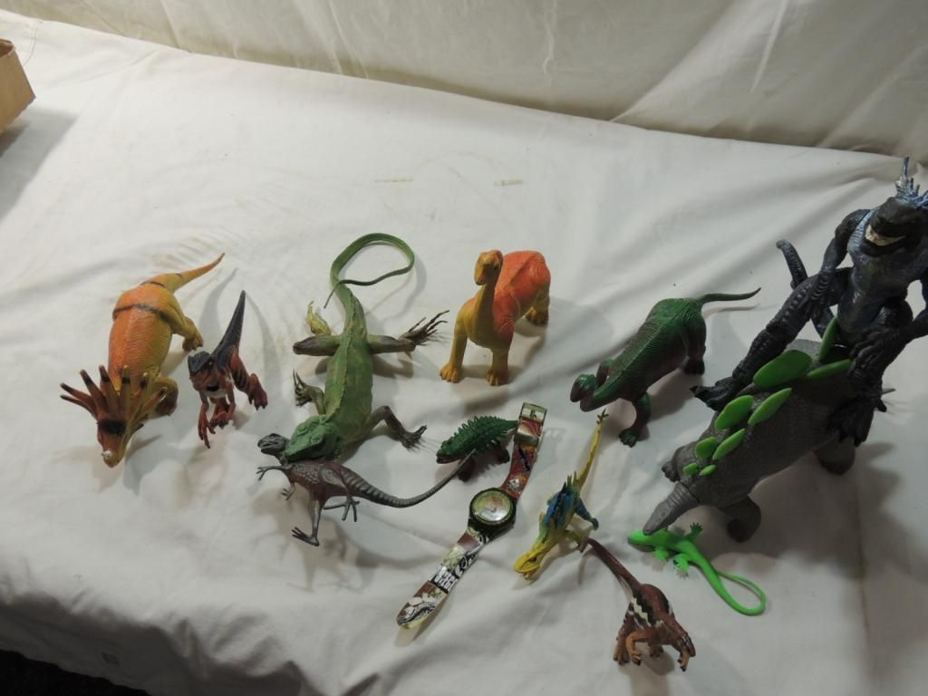 DINOSAUR TOYS AND ACTION FIGURES ASSORTED SOME MOVEABLE COLLECTIBLE. DIFFERENT SIZES. AS SHOWN SEE PHOTO FOR MORE DETAILS.