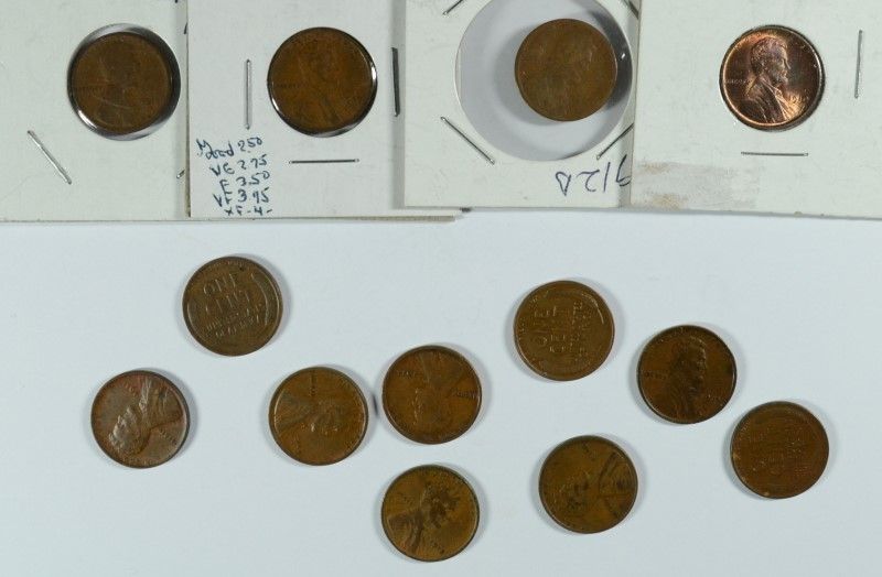 LOT ( 13 ) EARLY LINCOLN CENTS: 1919 AND EARLIER, MANY XF/AU COINS