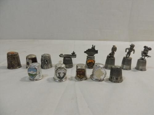LOT 13 VINTAGE PEWTER THYMBELS VARIOUS TOPICS. AS SHOWN. VIEW PICTURE FOR DETAIL.