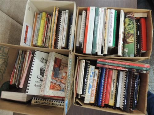 LOT 134 WHOLE LIBRARY VINTAGE ASSORTED STYLES OF COOK BOOKS. LOOKING FOR THAT RECEIPE IT IN THIS GROUP. AS SHOWN. VIEW PICTURE FOR DETAIL.