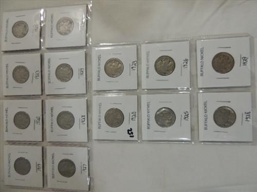 LOT 14 CIRCULATED BUFFALO NICKELS: 1919, 20, 23,