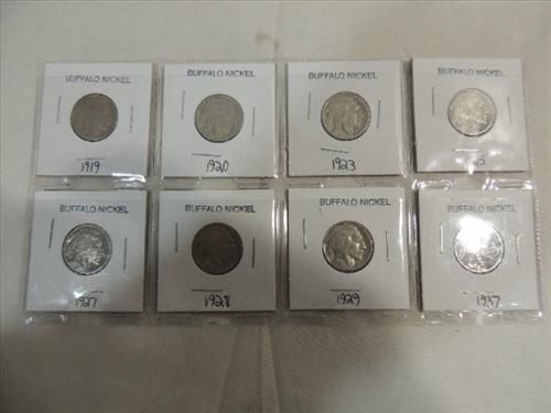 LOT 14 CIRCULATED BUFFALO NICKELS: 1919, 20, 23, 25, 26, 27, 28, 29 & 37. AS SHOWN. VIEW PICTURE FOR DETAIL.