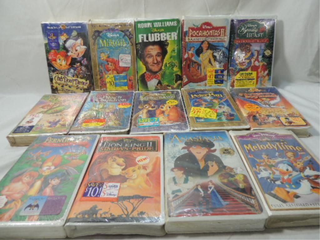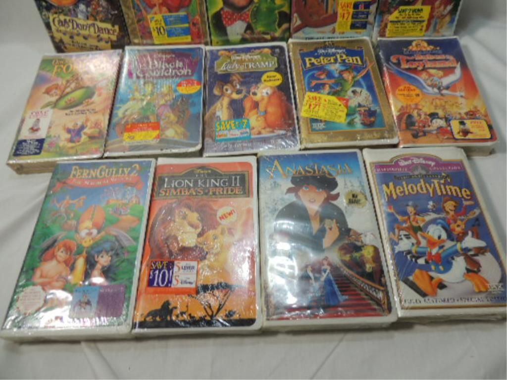 DISNEY CLASSICS. VHS VIDEOS. BEAUTY AND THE BEAST THE ENCHANTED CHRISTMAS, POCAHONTAAS 2, FLUBBER, THE LITTLE MERMAID, CATS DON'T DANCE, ONCE UPON A FOREST, BLACK CAULDRON, BABES IN TOY LAND, PETER PAN, LADY AND THE TRAMP, FERN GULLY 2, LION KING 2 SIMBAS PRIDE, ANASTASIA, MELODY TIME. AS SHOWN. SEE PHOTO FOR MORE DETAILS.