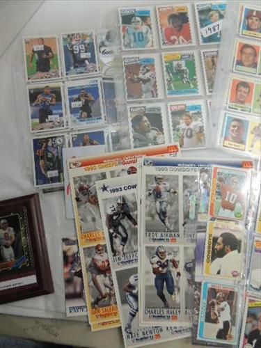 LOT 142 ASSORTED FOOTBALL PLAYER CARDS: 135 CARDS, 6 MCDONALDS UNCUT SHEETS OF 6 AND MORE. AS SHOWN. VIEW PICTURE FOR DETAIL.