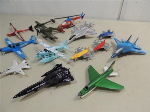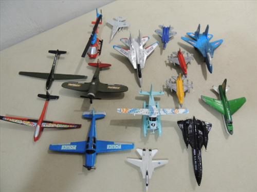 LOT 15 (2) DIE CAST METAL JETS & 13 ASSORTED PLASTIC CAST AIRPLANES. AS SHOWN. VIEW PICTURE FOR DETAIL..