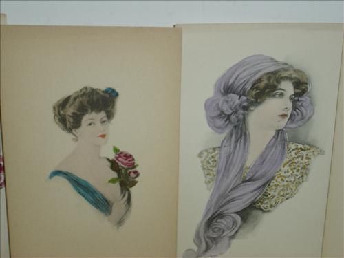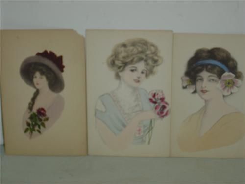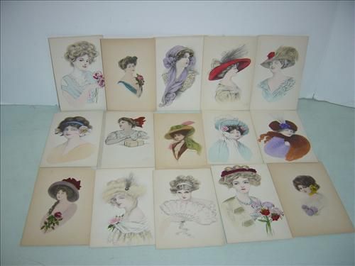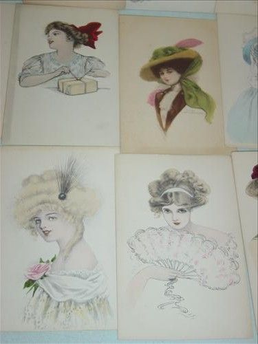 LOT OF 15 VINTAGE POSTCARDS. ALL HAVE WATERCOLOR ARTWORK PRINTS OF WOMEN. AS SHOWN. VIEW PICTURE FOR DETAIL.