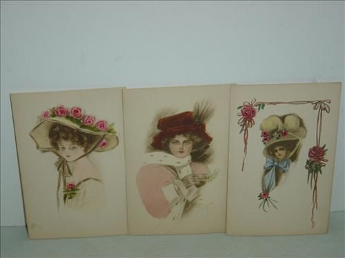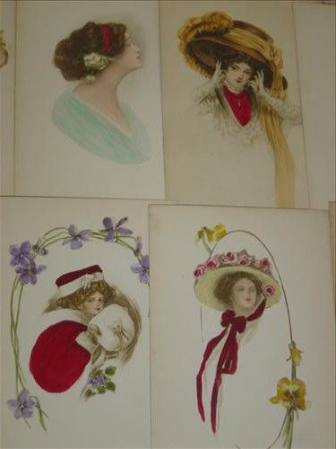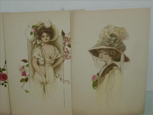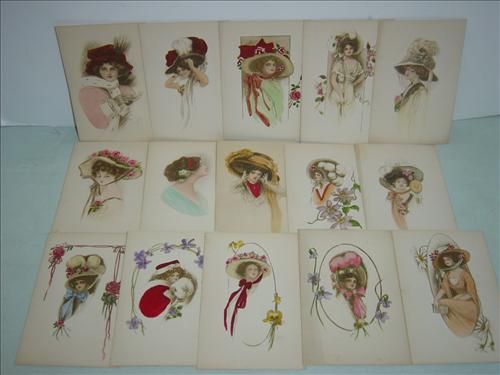 LOT OF 15 VINTAGE POSTCARDS. ALL HAVE WATERCOLOR IMAGES OF WOMEN. AS SHOWN. VIEW PICTURE FOR DETAIL.
