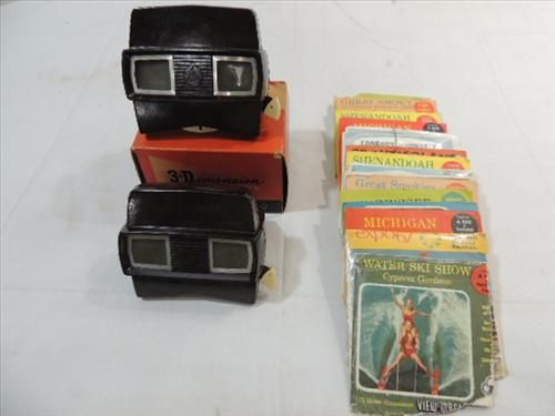 LOT 16 (2) MODEL E VIEW-MASTER VIEWER & 14 VACATION SITE SERIES SLIDE. AS SHOWN. VIEW PICTURE FOR DETAIL.