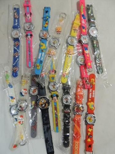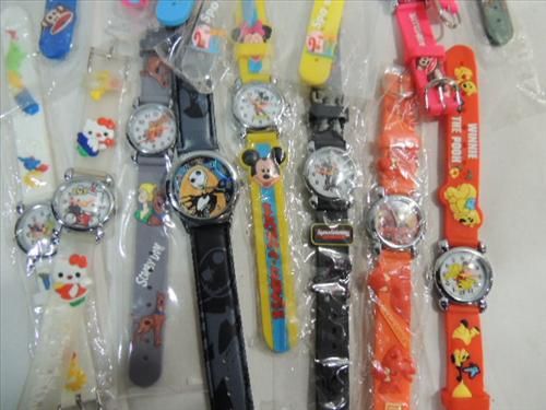 LOT 16 CHILDRENS QUARTZ WRIST WATCHES: SIMPSONS, HELLO KITTY, SPONGE BOB AND MORE. AS SHOWN. VIEW PICTURE FOR DETAIL.