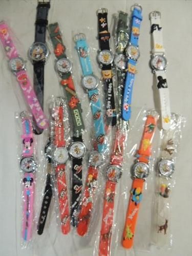 LOT 16 CHILDRENS QUARTZ WRIST WATCHES: SPONGE BOB, BARBIE, SHREK AND MORE. AS SHOWN. VIEW PICTURE FOR DETAIL.